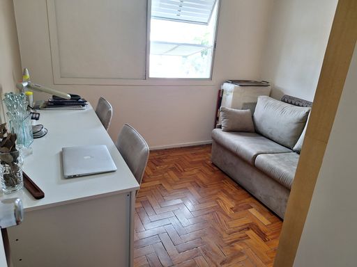 O apartamento fica no 8º andar - a altura perfeita. Longe do barulho da rua e ventilação natural.